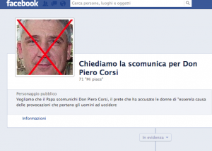 Su Facebook, intanto, impazzano gruppi in difesa e contro don Corsi. Da chi ne chiede la scomunica, a chi lo difende perché non inciterebbe alla violenza, fino a un gruppo di discussione sull’emancipazione femminile.