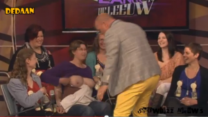 Un parterre di tutto rispetto: donne che allattavano in diretta e che sempre in diretta si tiravano il latte. Una di loro ha proposto al conduttore di assaggiare dal biberon un po’ di latte appena tirato. Ma Peter de Leeuw ha rilanciato, preferendo di gran lunga provare ad attaccarsi direttamente al seno della signora, che ha risposto “sì ma non mi mordere”. E tra le risate generali, la donna ha staccato entrambi i tiralatte, concedendo al conduttore il piacere di tornare, per un attimo e in diretta televisiva, bambino!