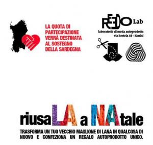 A ReeDoLab, un negozio che è anche un laboratorio, con l’aiuto di una stilista si può dare corpo alla propria idea di moda, e perché no anche a un vecchio maglione di lana che non si usa più. Questo è quanto accadrà Sabato 14 dicembre dalle 16.30 alle 19.30 proprio a ReeDoLab (Via Bertola, 86, Rimini) con un “Laboratorio di moda autoprodotta”. Ma questa volta non si tratta solo di confezionare un pezzo unico, originale, magari da indossare o regalare a Natale. Il vero regalo sta nel fatto che la quota di partecipazione (20 euro) sarà destinata a sostegno della Sardegna.