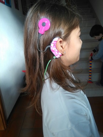 Ma alla visita tanto attesa, la sconvolgente notizia: “Ricordo ancora le lacrime dell’audiometrista e quell’annuncio terribile: Romina non sente assolutamente nulla. Quando sono uscita dall’ambulatorio, vedendomi distrutta, una donna che era seduta in attesa mi disse che mia figlia avrebbe un giorno sentito e parlato come tutti gli altri. Non avrei mai immaginato che sarebbe stato proprio così”. Grazie, infatti, all’intervento per l’impianto cocleare, eseguito quando Romina aveva 14 mesi e poi di nuovo a tre anni, oggi la bimba è esattamente come gli altri: “Il nostro è un caso fortunato. Anche perché Romina ha un carattere solare e forte che la aiuta molto ad affrontare le conseguenze del suo problema, come quando l’anno scorso un bambino l’ha presa in giro e lei, per nulla abbattuta, le ha chiesto se volesse provare i suoi impianti. Ha un rapporto bellissimo e alla pari con i suoi fratelli, quando va sgridata la sgridiamo, a scuola è molto brava. Per diritto le spetta l’insegnante di sostegno, di cui in realtà non ci sarebbe bisogno: lei quasi si vanta di poterlo avere, è gelosa e un po’ se ne approfitta. In classe è aiutata anche dalla Roger Pen, una sorta di microfono sintonizzato con i suoi impianti che serve a ridurre il brusio e a consentirle di sentire meglio: lo tiene l’insegnante e, se i suoi compagni devono intervenire, se lo passano”.