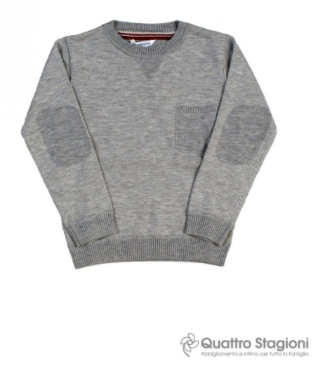 Maglioncino a manica lunga, girocollo e realizzato in misto cotone e lana con taschino, del brand Dodipetto, che veste i bambini con capi attraenti, di qualità, pratici, confortevoli e sicuri.