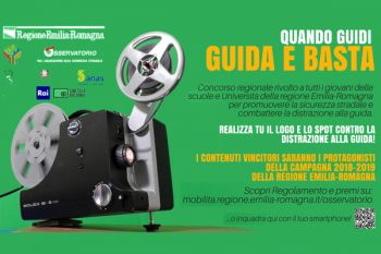 La Regione Emilia-Romagna, in collaborazione con l’Ufficio Scolastico Regionale, ANAS, RAI e Cineteca di Bologna, lancia la Campagna “Guida e Basta”, volta a educare tutti gli utenti della strada sui rischi di una guida distratta. Partendo innanzitutto dai giovani, educandoli e, nello stesso momento, chiedendo a loro di essere sentinelle per i propri genitori e parenti. Il concorso ha l’obiettivo di raccontare, dal punto di vista dei bambini e ragazzi, il problema dell’incidentalità per guida distratta, in particolare a causa dell’utilizzo di smartphone.
