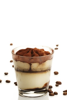 Lavorare lo zucchero con il mascarpone e i tuorli delle uova. Aggiungere gli albumi montati a neve. Inzuppare i savoiardi nel caffè preparato precedentemente e disporli a strati alternati con la crema di mascarpone e il cioccolato fondente a scaglie. Spolverare con il cacao in polvere e mettere a riposare in frigo.