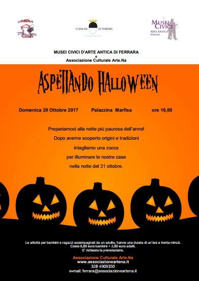 Domenica 29 ottobre, alle 16, a palazzina Marfisa di Corso Giovecca 170, i Musei Civici di Arte Antica e l’Associazione Culturale Arte.Na organizzano un laboratorio per bambini e ragazzi dai 4 ai 12 anni e i loro genitori per prepararsi a festeggiare Halloween.