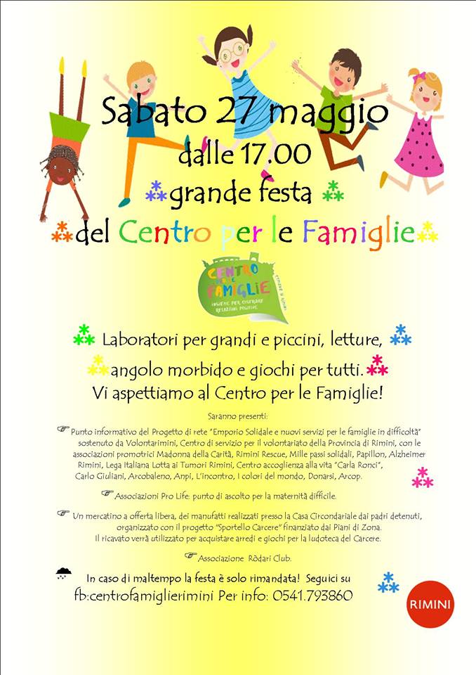 Care mamme, papà, bimbi, nonni, famiglie, amici il centro per le famiglie di Rimini vuole festeggiare tutti insieme l’anno appena trascorso.