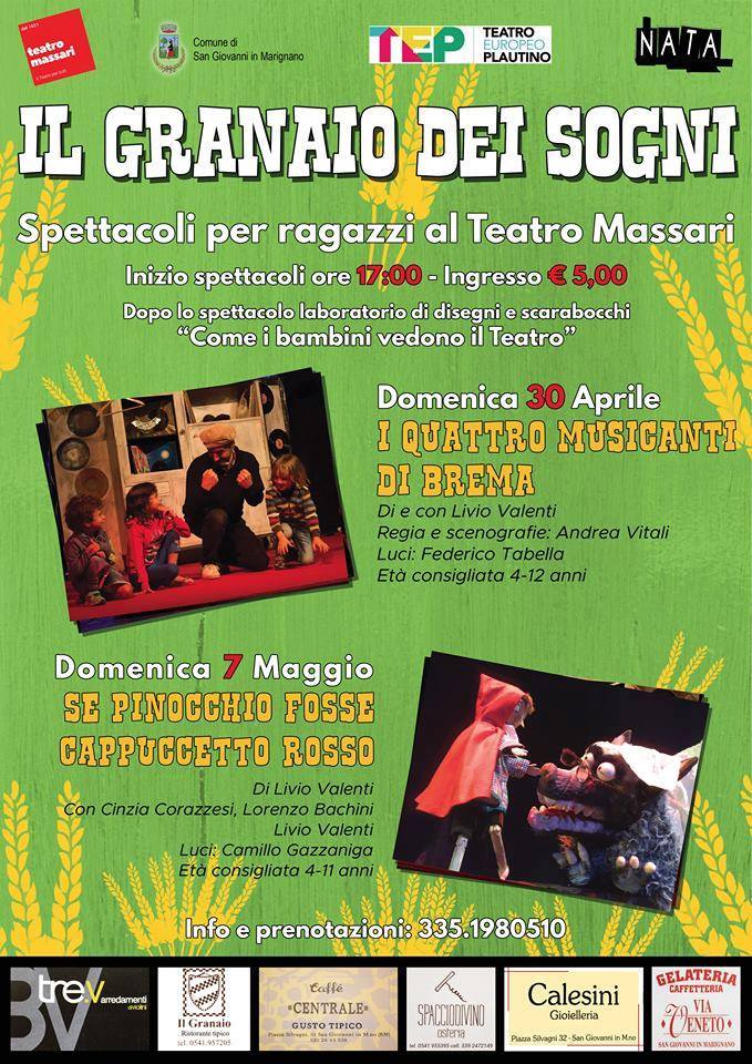IL GRANAIO DEI SOGNI, inserito nella programmazione “TEATRO AL MASSARI 2017”, sarà rivolto ai bambini dai 4 ai 12 anni, con due spettacoli che uniscono il lavoro dell’attore con pupazzi, marionette e burattini.