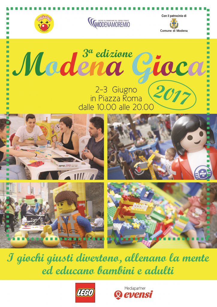 Venerdì 2 e Sabato 3 Giugno dalle 10.00 alle 20.00 in Piazza Roma torna Modena Gioca!