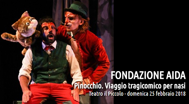 Note di regia: due attori, due valigie, infiniti nasi e un grande classico della letteratura per ragazzi. Pinocchio rappresenta il rito iniziatico di un bambino che vuole entrare a far parte della società. Per farlo, come tutti i fanciulli delle favole più note, dovrà uscire di casa e affrontare il mondo, viaggiare attraverso paesi dei Balocchi o di Acchiappacitrulli, fare i conti con le paure (Mangiafuoco), con la coscienza (Grillo Parlante), con l’amicizia (Lucignolo) e con i più svariati imbroglioni (Gatto e la volpe). Solo dopo aver superato queste prove entrerà finalmente nell’età adulta (nel romanzo rappresentata dalla “trasformazione” in bambino) per prendersi cura, a sua volta, dei propri affetti (il padre Geppetto e la Fata Turchina). I due attori racconteranno la storia con l’ausilio di piccoli oggetti, maschere, nasi, pupazzi, rubandosi le parti, improvvisando e magari alla fine capiranno che, forse, a raccontarla in due ci si diverte il doppio.