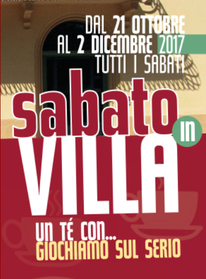 Dal 21 ottobre al 2 dicembre 2017 a Villa Edvige Garagnani (via Masini, 11 – Zola Predosa) torna l’appuntamento con il “Sabato in Villa”: tutti i sabati, al primo piano della Villa, laboratori ludico ricreativi o motori per bambini in fasce di età dai 3 ai 11 anni preceduti da una piccola merenda offerta (NB: E’ richiesta la presenza in struttura di almeno un accompagnatore per minore per tutta la durata del laboratorio).