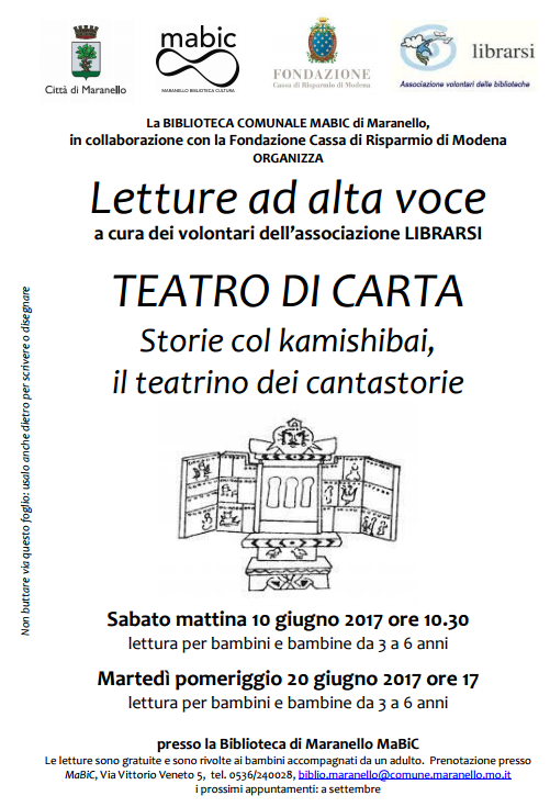 La Biblioteca Mabic di Maranello, in collaborazione con la Fondazione Cassa di Risparmio di Modena, organizza in giugno una serie di letture ad alta voce a cura dei volontari dell’associazione Librarsi.