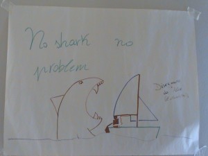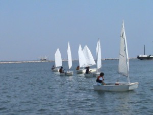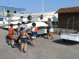 “No shark, no problem”. Una bocca di squalo minaccia una barca tra le onde: è solo un disegno ma la dice lunga sulla passione per il mare dei bambini che frequentano la Scuola di Vela del Circolo Velico Ravennate a Marina di Ravenna. Un mondo a sé, in parte. Che con i classici centri estivi ha poco in comune e molto di diverso. Sono trentadue, al momento, gli iscritti, tutti compresi tra sei e 14 anni. Ci si ritrova alle nove, la mattina, e dopo qualche nozione teorica si esce in mare. Non prima di essersi arrangiati a preparare le barche. Nel magazzino i bambini sono perfettamente a loro agio tra vele, alberi e giubbotti di salvataggio. E il punto forte della scuola, forse, è proprio questo: “Qui si impara ad armare e disarmare la barca ogni volta – spiega la responsabile Daniela Rossi – e si apprende la nomenclatura di base. Tutti i giorni, prima di andare in acqua e subito dopo il ritorno, facciamo la cosiddetta ‘saletta’”.