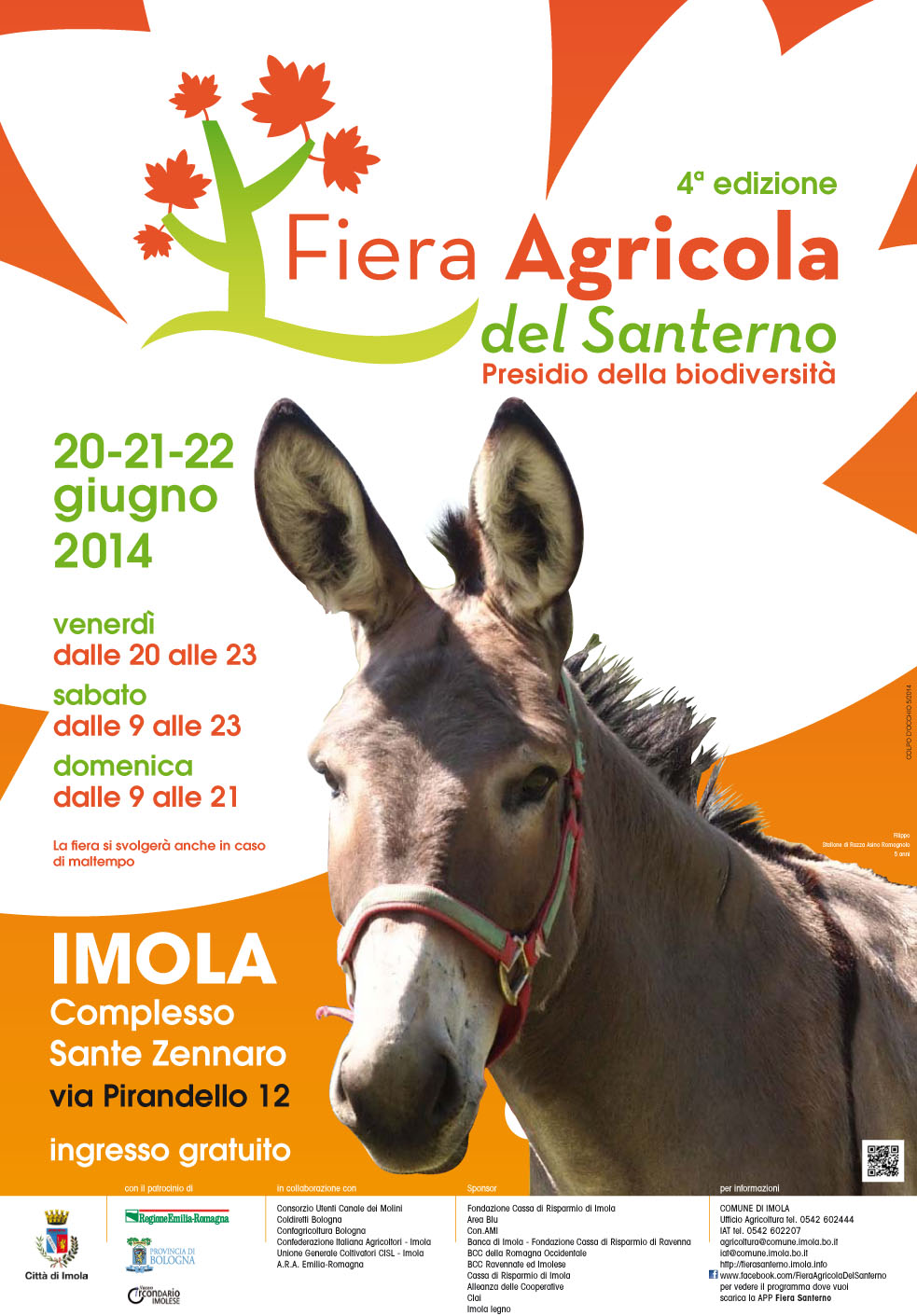 Di asini, muli e zootecnia si parlerà dal 20 al 22 giugno nella quarta edizione della “Fiera Agricola del Santerno”. Una tre giorni dedicata all’esposizione dei prodotti agricoli e agroalimentari, al giardinaggio, alle attrezzature e anche all’asino. Sarà infatti allestita una mostra nazionale dell’asino italiano e organizzati una serie di convegni ai quali parteciperanno i massimi esperti di zootecnica. L’evento si svolgerà nel complesso di San Zennaro di Imola (Via Pirandello, 12).