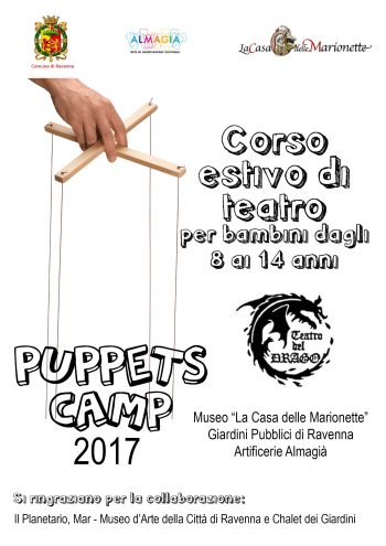 Da lunedì 19 giugno, a Ravenna, si svolgerà la seconda settimana del Puppets Camp, il corso estivo di teatro per bambini dagli 8 ai 14 anni, promosso dal Teatro del Drago/Famiglia d’Arte Monticelli e dal Museo La casa delle Marionette in collaborazione con la Rete Almagià, il Planetario e il MAR di Ravenna.