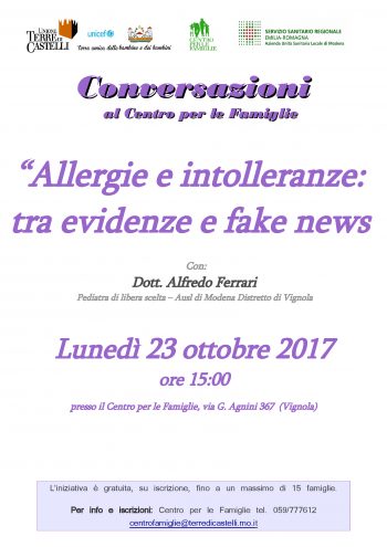 Allergie e intolleranze alimentari: incontro con il pediatra a Vignola