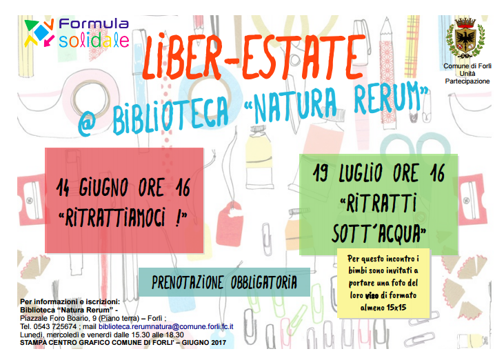 Sede: Biblioteca “Natura Rerum” Piazzale Foro Boario, 9 (Piano terra) Info e iscrizioni: Tel. 0543 725674 ; mail biblioteca.rerumnatura@comune.